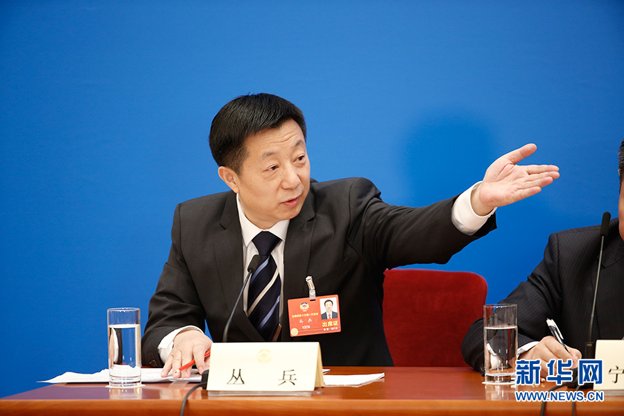 全國(guó)政協(xié)十三屆一次會(huì)議3月8日15:00在人民大會(huì)堂新聞發(fā)布廳舉行第二場(chǎng)記者會(huì),邀請(qǐng)中央財(cái)經(jīng)領(lǐng)導(dǎo)小組辦公室副主任楊偉民,中國(guó)進(jìn)出口銀行董事長(zhǎng)、黨委書(shū)記胡曉煉,農(nóng)業(yè)部原副部長(zhǎng)陳曉華,全國(guó)工商聯(lián)副主席、清華大學(xué)經(jīng)濟(jì)管理學(xué)院院長(zhǎng)錢穎一,中國(guó)中化集團(tuán)有限公司黨組書(shū)記、董事長(zhǎng)寧高寧就推動(dòng)經(jīng)濟(jì)高質(zhì)量發(fā)展回答記者提問(wèn)。圖為記者會(huì)主持人叢兵 。新華網(wǎng)/中國(guó)政府網(wǎng) 翟子赫攝
