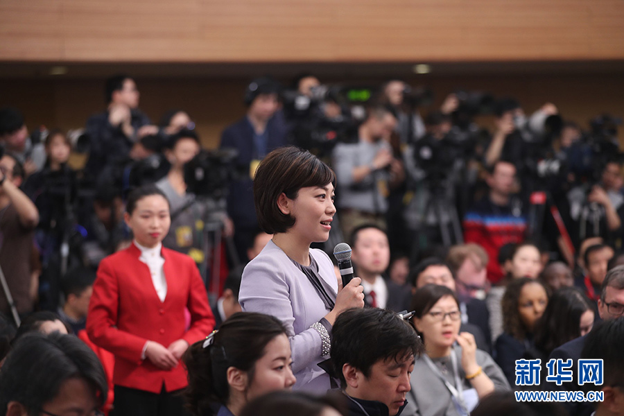 十三屆全國(guó)人大一次會(huì)議新聞中心于3月8日上午10時(shí)在梅地亞中心多功能廳舉行記者會(huì),邀請(qǐng)外交部部長(zhǎng)王毅就“中國(guó)外交政策和對(duì)外關(guān)系”回答中外記者提問(wèn)。圖為中央電視臺(tái)記者提問(wèn)。新華網(wǎng)/中國(guó)政府網(wǎng)陳杰 攝