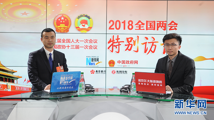 3月9日,全國人大代表、遼寧三溝酒業(yè)有限責任公司董事長吳京耕(左)做客新華網(wǎng)2018全國兩會特別訪談。新華網(wǎng)?郭小天攝