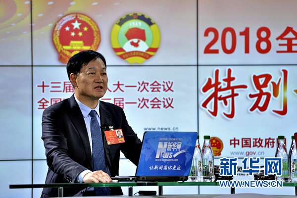 全國人大代表、牧原食品股份有限公司董事長秦英林做客新華網(wǎng)2018全國兩會特別訪談 新華網(wǎng) 李相博攝