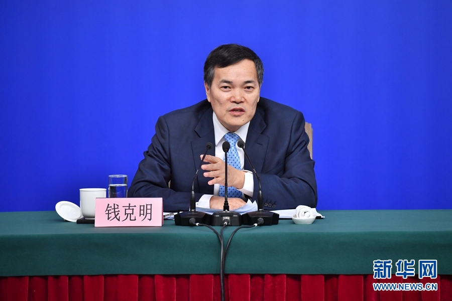 3月11日,十三屆全國(guó)人大一次會(huì)議新聞中心舉行記者會(huì),邀請(qǐng)商務(wù)部部長(zhǎng)鐘山、副部長(zhǎng)兼國(guó)際貿(mào)易談判副代表王受文、副部長(zhǎng)錢克明就“推動(dòng)形成全面開放新格局推動(dòng)商務(wù)事業(yè)高質(zhì)量發(fā)展”相關(guān)問題回答中外記者提問。這是錢克明在回答記者提問。 新華社記者 李鑫 攝