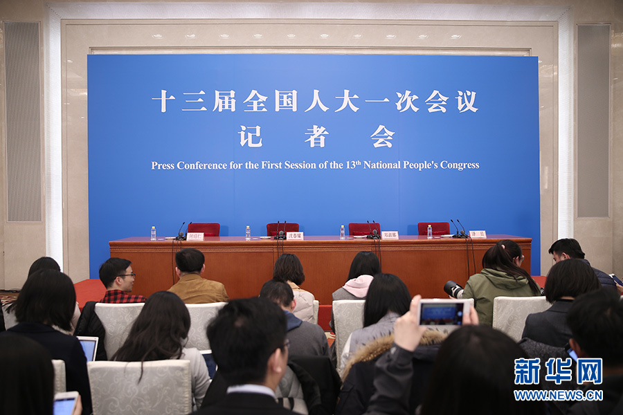 3月11日,十三屆全國(guó)人大一次會(huì)議新聞中心在人民大會(huì)堂一樓新聞發(fā)布廳舉行記者會(huì),邀請(qǐng)十三屆全國(guó)人大一次會(huì)議秘書處法案組組長(zhǎng)、全國(guó)人大常委會(huì)法工委主任沈春耀,法案組副組長(zhǎng)、全國(guó)人大常委會(huì)法工委副主任鄭淑娜就“憲法修正案”相關(guān)問(wèn)題回答中外記者提問(wèn)。圖為記者會(huì)開(kāi)始前。新華網(wǎng)/中國(guó)政府網(wǎng) 陳杰 攝