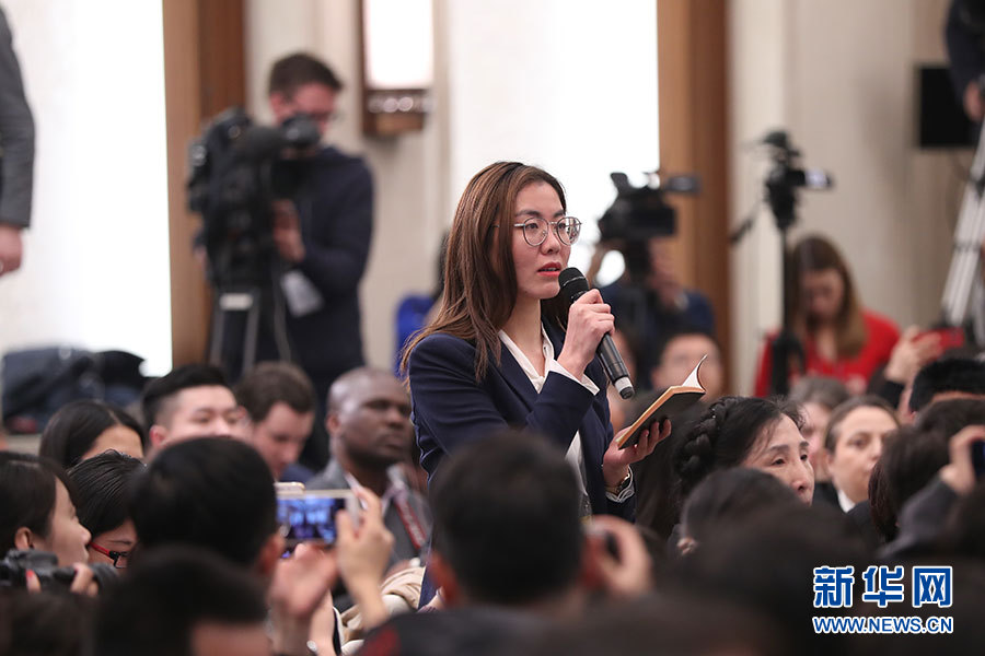 3月11日,十三屆全國人大一次會議新聞中心在人民大會堂一樓新聞發(fā)布廳舉行記者會,邀請十三屆全國人大一次會議秘書處法案組組長、全國人大常委會法工委主任沈春耀,法案組副組長、全國人大常委會法工委副主任鄭淑娜就“憲法修正案”相關(guān)問題回答中外記者提問。圖為封面新聞記者提問。新華網(wǎng)/中國政府網(wǎng) 翟子赫 攝