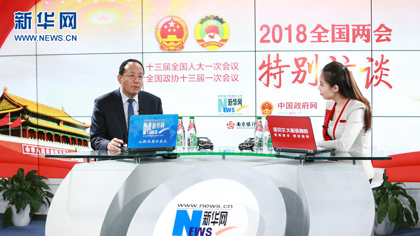 圖為全國(guó)人大代表,云南省迪慶藏族自治州委副書(shū)記、州長(zhǎng)齊建新(左)新做客新華網(wǎng)2018全國(guó)兩會(huì)特別訪(fǎng)談。新華網(wǎng) 楊锘攝
