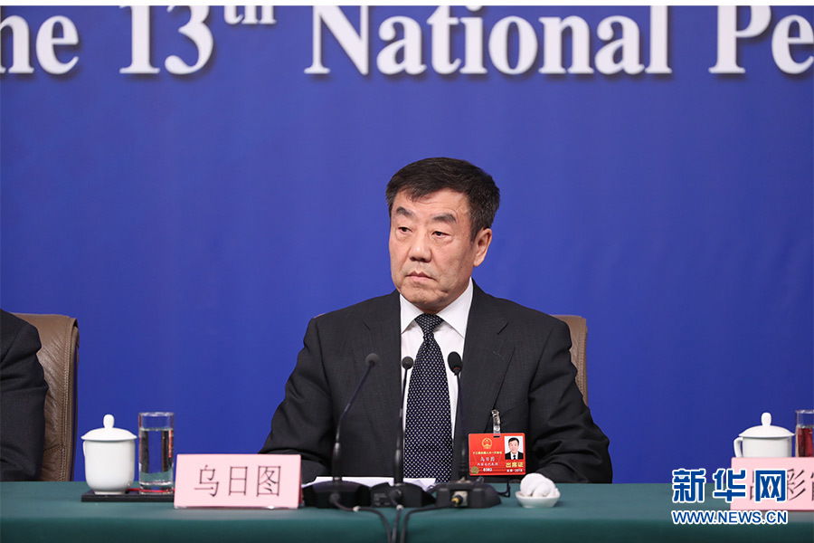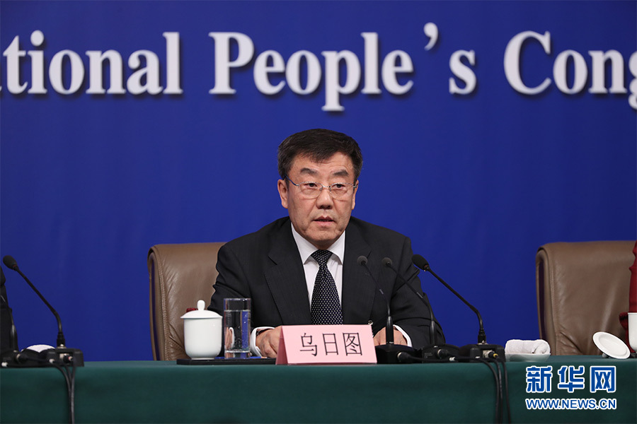 3月12日,十三屆全國人大一次會議新聞中心在梅地亞中心多功能廳舉行記者會,邀請十二屆全國人大內(nèi)司委副主任委員王勝明、財經(jīng)委副主任委員烏日圖、教科文衛(wèi)委副主任委員吳恒、環(huán)資委委員呂彩霞,全國人大常委會法工委副主任王超英、副主任許安標就“人大立法工作”相關問題回答中外記者提問。圖為財經(jīng)委副主任委員烏日圖回答記者提問。新華網(wǎng)/中國政府網(wǎng) 翟子赫 攝