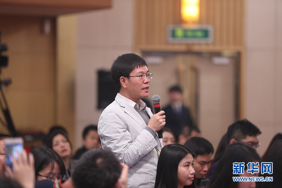 3月12日,十三屆全國人大一次會議新聞中心在梅地亞中心多功能廳舉行記者會,邀請十二屆全國人大內(nèi)司委副主任委員王勝明、財經(jīng)委副主任委員烏日圖、教科文衛(wèi)委副主任委員吳恒、環(huán)資委委員呂彩霞,全國人大常委會法工委副主任王超英、副主任許安標(biāo)就“人大立法工作”相關(guān)問題回答中外記者提問。圖為瞭望周刊記者提問。新華網(wǎng)/中國政府網(wǎng) 翟子赫 攝