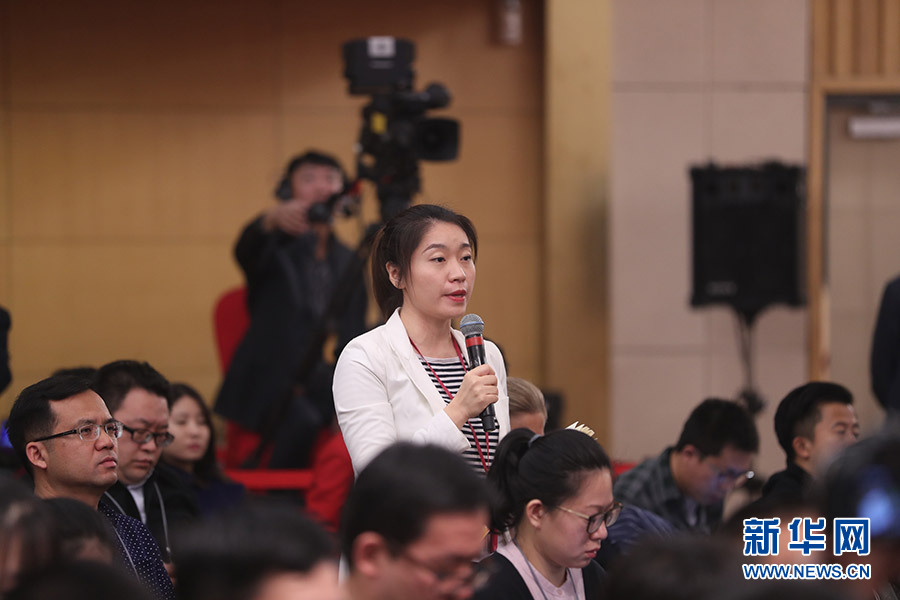 3月12日,十三屆全國(guó)人大一次會(huì)議新聞中心在梅地亞中心多功能廳舉行記者會(huì),邀請(qǐng)十二屆全國(guó)人大內(nèi)司委副主任委員王勝明、財(cái)經(jīng)委副主任委員烏日?qǐng)D、教科文衛(wèi)委副主任委員吳恒、環(huán)資委委員呂彩霞,全國(guó)人大常委會(huì)法工委副主任王超英、副主任許安標(biāo)就“人大立法工作”相關(guān)問(wèn)題回答中外記者提問(wèn)。圖為中央電視臺(tái)記者提問(wèn)。新華網(wǎng)/中國(guó)政府網(wǎng) 翟子赫 攝