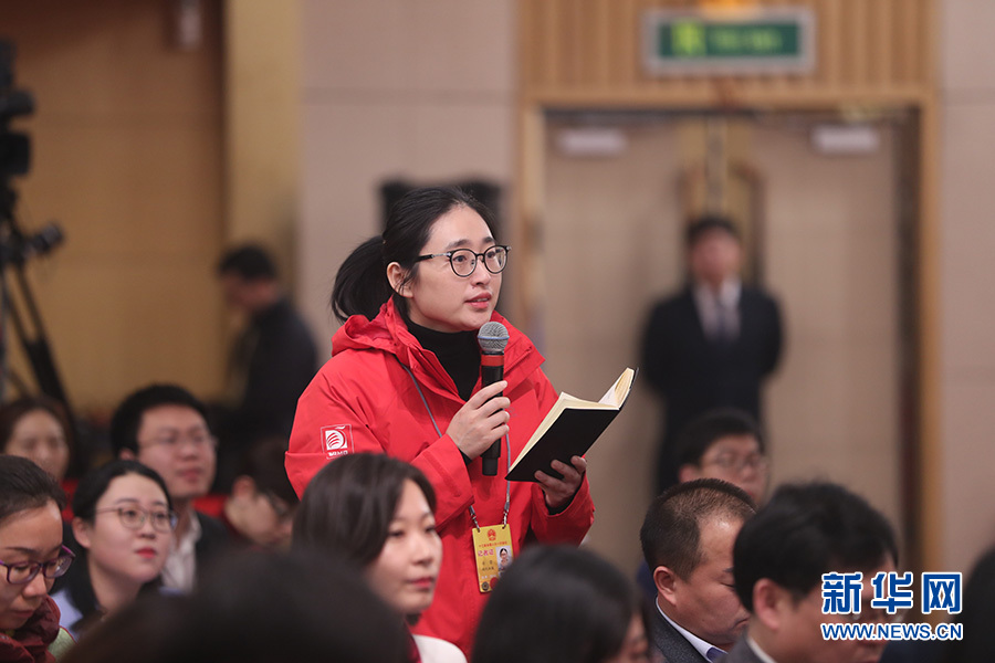 3月12日,十三屆全國人大一次會議新聞中心在梅地亞中心多功能廳舉行記者會,邀請十二屆全國人大財經(jīng)委副主任委員尹中卿、教科文衛(wèi)委副主任委員吳恒、環(huán)資委副主任委員袁駟、內(nèi)司委委員鄭功成,全國人大常委會預(yù)算工委副主任劉修文、常委會辦公廳秘書局巡視員傅文杰就“人大監(jiān)督工作”相關(guān)問題回答中外記者提問。圖為現(xiàn)代快報記者提問。新華網(wǎng)/中國政府網(wǎng) 王健 攝