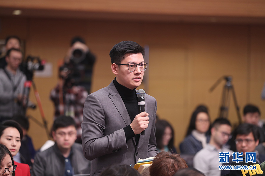 3月12日,十三屆全國人大一次會議新聞中心在梅地亞中心多功能廳舉行記者會,邀請十二屆全國人大財經(jīng)委副主任委員尹中卿、教科文衛(wèi)委副主任委員吳恒、環(huán)資委副主任委員袁駟、內(nèi)司委委員鄭功成,全國人大常委會預算工委副主任劉修文、常委會辦公廳秘書局巡視員傅文杰就“人大監(jiān)督工作”相關(guān)問題回答中外記者提問。圖為中央電視臺記者提問。新華網(wǎng)/中國政府網(wǎng) 王健 攝