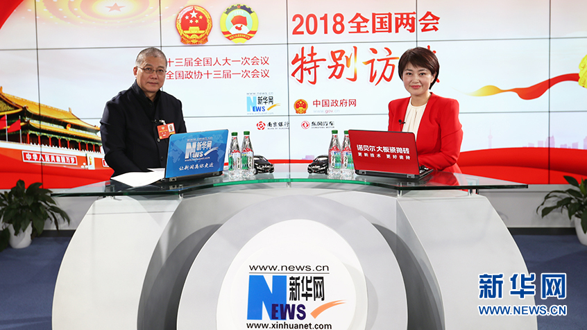 13日,全國(guó)政協(xié)委員,中國(guó)文聯(lián)副主席、中國(guó)美術(shù)學(xué)院院長(zhǎng)許江做客新華網(wǎng)2018全國(guó)兩會(huì)特別訪談。新華網(wǎng) 郭小天攝