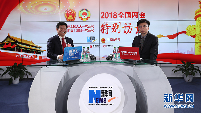 3月13日,全國(guó)人大代表、山東省淄博市原山林場(chǎng)黨組書(shū)記孫建博(左)做客新華網(wǎng)2018全國(guó)兩會(huì)特別訪(fǎng)談。新華網(wǎng) 郭小天攝