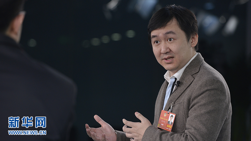 圖為全國政協(xié)委員、搜狗CEO王小川做客新華網(wǎng)2018全國兩會特別訪談。新華網(wǎng) 李相博攝