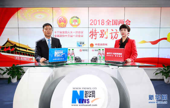 圖為全國人大代表、河南省輝縣市張村鄉(xiāng)裴寨村黨支部書記裴春亮做客新華網(wǎng)2018全國兩會特別訪談 新華網(wǎng) 范作言 攝