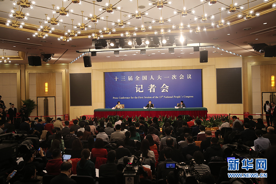 十三屆全國人大一次會(huì)議新聞中心于3月17日15時(shí)在梅地亞中心多功能廳舉行記者會(huì),邀請(qǐng)環(huán)保部部長(zhǎng)李干杰就“打好污染防治攻堅(jiān)戰(zhàn)”相關(guān)問題回答中外記者提問。圖為記者會(huì)現(xiàn)場(chǎng)。新華網(wǎng)/中國政府網(wǎng) 陳杰 攝