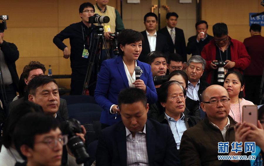 十三屆全國(guó)人大一次會(huì)議新聞中心于3月17日15時(shí)在梅地亞中心多功能廳舉行記者會(huì),邀請(qǐng)環(huán)保部部長(zhǎng)李干杰就“打好污染防治攻堅(jiān)戰(zhàn)”相關(guān)問(wèn)題回答中外記者提問(wèn)。圖為中國(guó)國(guó)際電視臺(tái)記者提問(wèn)。新華網(wǎng)/中國(guó)政府網(wǎng) 曲植 攝