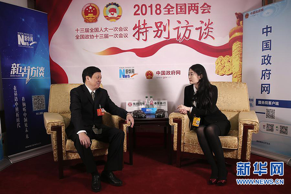 圖為全國人大代表、福州市市長(zhǎng)尤猛軍做客新華網(wǎng)2018全國兩會(huì)特別訪談 新華網(wǎng) 王翰林?攝
