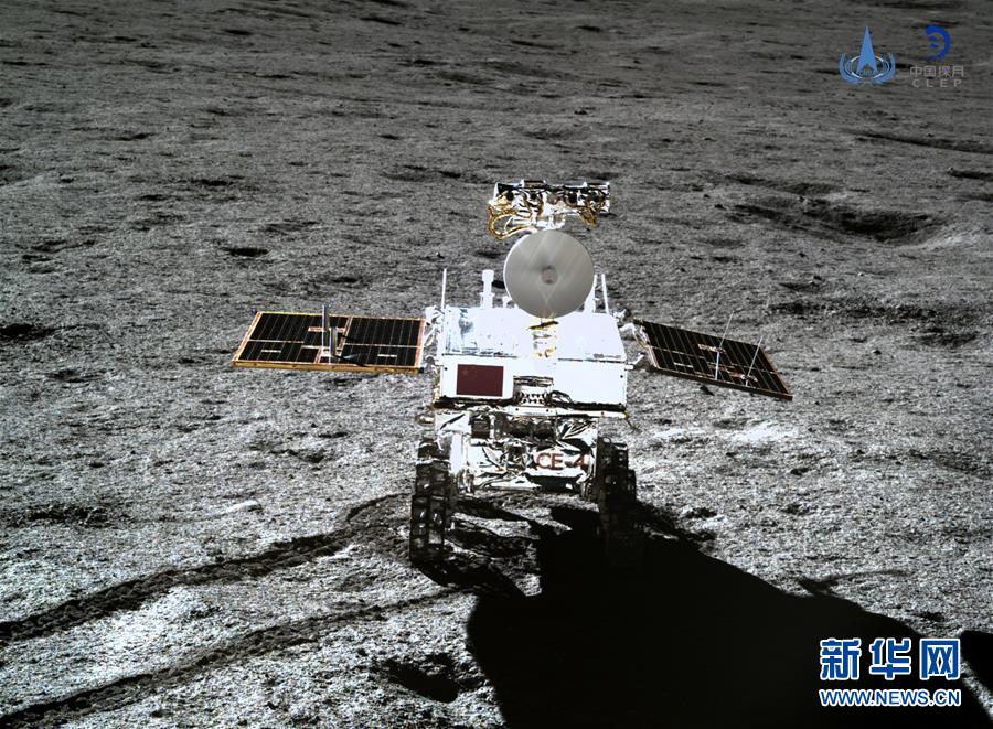 這是嫦娥四號著陸器地形地貌相機(jī)對玉兔二號巡視器成像?!⌒氯A社發(fā)(國家航天局供圖)
