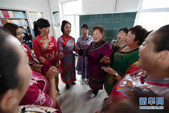 在同江市八岔赫哲族伊瑪堪傳習所,學員在學習伊瑪堪(2016年5月25日攝)。新華社記者 王建威 攝