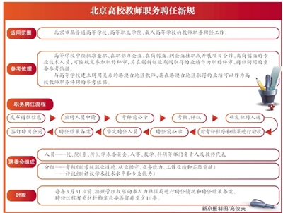 北京市人社局介紹,2005年,北京出臺了《北京市高等學校教師職務聘任管理辦法(試行)》,在全國率先下放高校職稱評審權,開展了高校教師職務聘任制改革,將教師崗位聘任條件和職稱評價標準合二為一,尊重用人單位的自主權,由高校根據(jù)學科特色和發(fā)展需要,制定不同層次教師崗位的聘任條件,按照規(guī)范的程序,以崗位聘用替代職稱評價,實現(xiàn)“想用的評得上,評得上的用得好”。