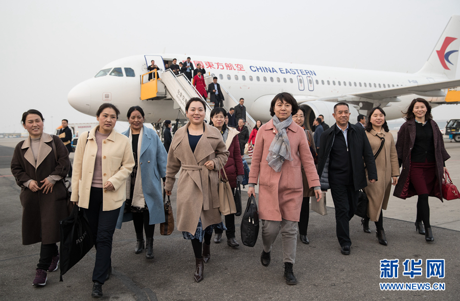 3月2日,來(lái)自甘肅省的全國(guó)人大代表乘坐飛機(jī)抵達(dá)北京。 新華社記者金立旺攝