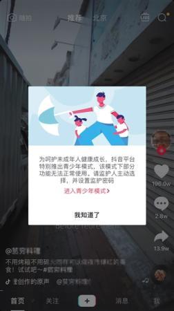 以抖音和快手為例,“青少年模式”開啟后,用戶每天使用時(shí)長(zhǎng)不超過(guò)40分鐘,而且晚上10點(diǎn)至早上6點(diǎn)無(wú)法使用。另外,無(wú)法開啟直播和瀏覽同城頁(yè)面,也無(wú)法進(jìn)行打賞、充值、提現(xiàn)、直播等操作。這些功能只有通過(guò)輸入密碼,關(guān)閉青少年模式才能再度開啟。