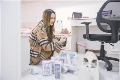 3月27日晚,曾琪回到家中將前幾天在國外購買的化妝品打包寄給自己的粉絲,海外代購是她的另一項(xiàng)副業(yè)。