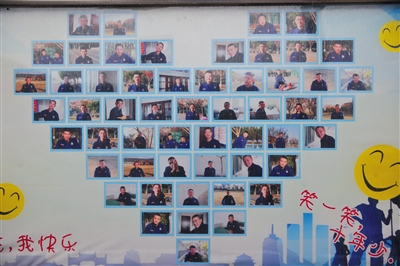 昨日下午,西昌大隊(duì)的駐地,一個(gè)櫥窗里貼著心形的“笑臉墻”。這當(dāng)中有26人再也無(wú)法返回駐地。