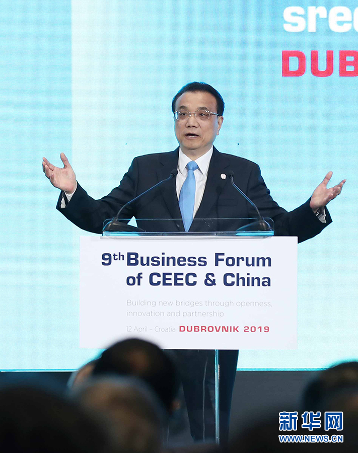當(dāng)?shù)貢r間4月12日上午,國務(wù)院總理李克強(qiáng)在杜布羅夫尼克與中東歐16國領(lǐng)導(dǎo)人共同出席第九屆中國-中東歐國家經(jīng)貿(mào)論壇開幕式并致辭。 新華社記者 劉衛(wèi)兵 攝