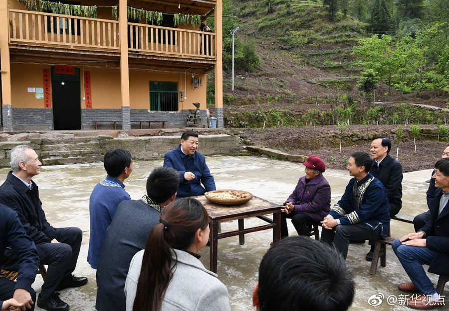 4月15日,習(xí)近平總書(shū)記赴重慶考察調(diào)研。一下飛機(jī),他就轉(zhuǎn)乘火車(chē)、汽車(chē)前往石柱土家族自治縣中益鄉(xiāng)小學(xué)、華溪村,深入農(nóng)戶(hù)家中和田間地頭,實(shí)地了解脫貧攻堅(jiān)工作進(jìn)展和解決“兩不愁三保障”突出問(wèn)題情況。?