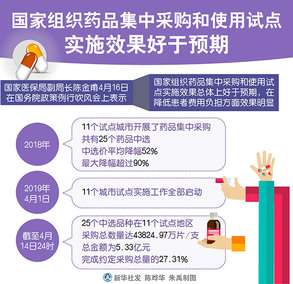 圖表:國家組織藥品集中采購和使用試點實施效果好于預(yù)期 新華社發(fā) 陳曄華 朱禹 制圖