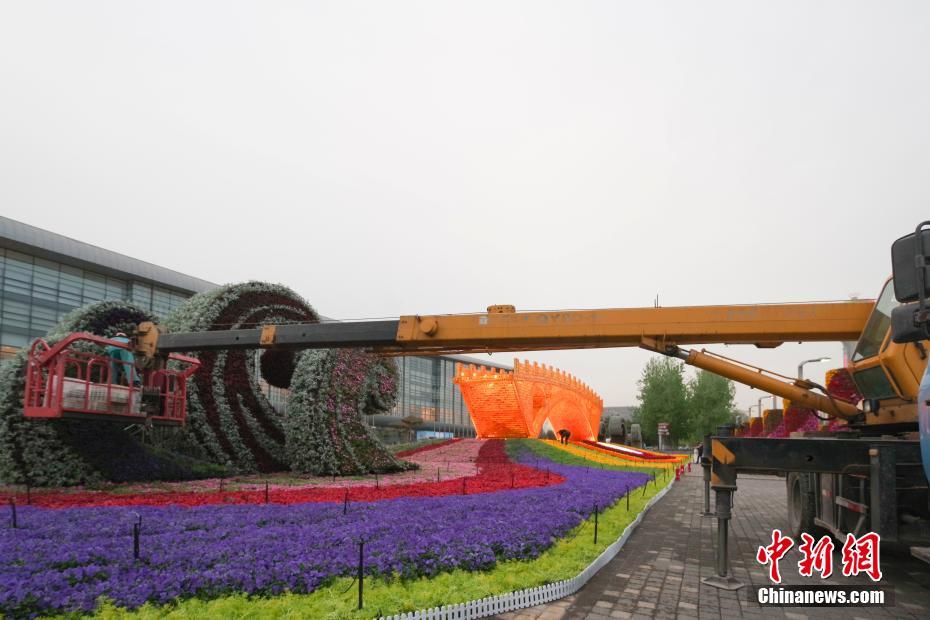 4月18日晚,北京奧林匹克公園內(nèi)的“絲路金橋”主題景觀點(diǎn)亮燈光,附屬的花壇景觀正在緊張施工?!敖z路金橋”由中國藝術(shù)家舒勇創(chuàng)作,長28米、高6米、寬4米,是以“一帶一路”倡議為語境的大型藝術(shù)作品,此次作為第二屆“一帶一路”國際合作高峰論壇的主題花壇亮相。中新社記者 賈天勇 攝