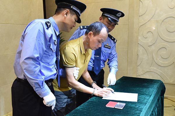 公安機(jī)關(guān)向“紅通人員”梁澤寧宣布逮捕決定(深圳市紀(jì)委監(jiān)委 倪勛 攝)