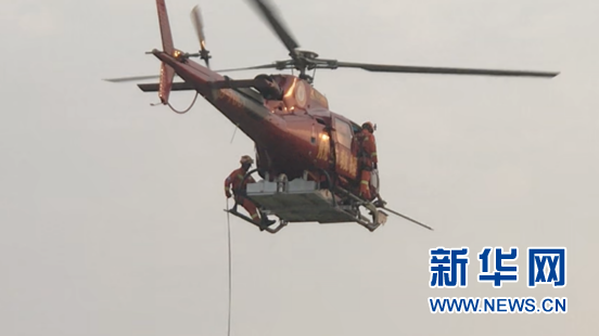直升機到達傷者受困地點,下降至距離傷者所在地面50米的位置開始懸停,消防員唐運德攜帶救援設備,依靠一根繩索,進行了垂直速降。