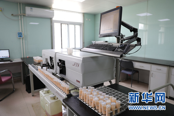 在辦公室簡單的交談后,叢慧敏帶記者來到旁邊的一棟辦公樓,門口的工作人員正在從手推車上卸下裝滿了橙色乳狀液體的試管,這也就是叢慧敏的另一項(xiàng)工作——對(duì)奶牛產(chǎn)下的牛奶進(jìn)行化驗(yàn)分析。除了找到好牛,還得讓牛吃上好料,“跟人一樣,我們也會(huì)根據(jù)牛的身體狀況合理搭配飲食,目標(biāo)就是保證奶質(zhì)好。”每個(gè)月首農(nóng)北京奶牛中心都要檢測(cè)約8萬份奶樣,對(duì)這些來自全國各地的奶質(zhì)進(jìn)行分析,通過數(shù)據(jù)對(duì)比得出結(jié)果,再將結(jié)果反饋給牧場(chǎng),指導(dǎo)牧場(chǎng)飼養(yǎng)過程中需要改進(jìn)的問題?!芭e個(gè)例子,某牧場(chǎng)樣本中,我們檢測(cè)發(fā)現(xiàn)乳脂低了,那么牛的食物里可能是吃的草少了,就需要我們減少某類飼料的分量,增加草的比重?!?/p>