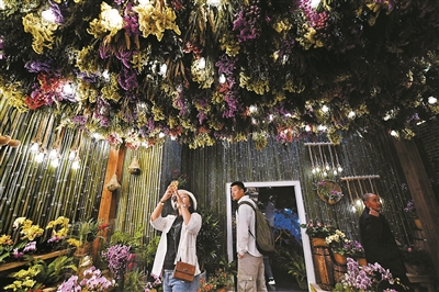 從北京世園會4號門進入,即可體驗“東線”游覽線路,涵蓋生活體驗館、世界園藝展示區(qū)、國際館等主要場館和景區(qū)。昨天下午,北青報記者來到位于北京世園會東北部區(qū)域的生活體驗館。剛一進門,眼前就浮現(xiàn)出一條“之”字形花田步道,參觀者可以自一樓沿坡道徐徐漫步至二樓,欣賞沿途不同主題的植物。步道兩側(cè)栽種著水仙、蝴蝶蘭、菊花等植物,還散落著不少用生活用品裝點的園藝小品,如小鞋子、小草帽、小木箱等。“我們通過這樣的布景方式,既體現(xiàn)綠色環(huán)保的生活理念,也是力求將園藝融入生活,體現(xiàn)‘愛園藝、愛生活’的美好主題?!鄙铙w驗館館長助理樊川介紹說。