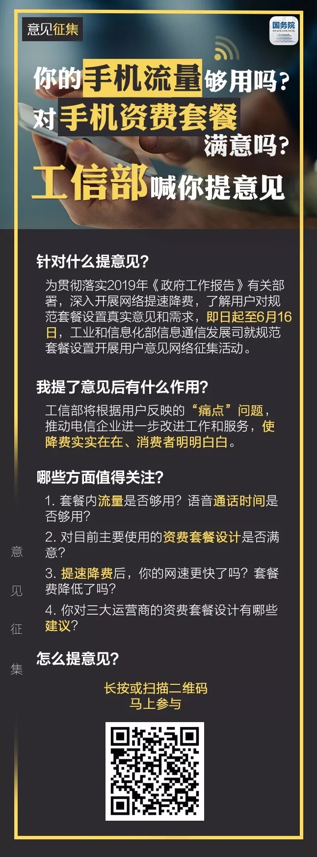 你的手機(jī)流量夠用嗎?對手機(jī)資費(fèi)套餐滿意嗎?工信部喊你提意見