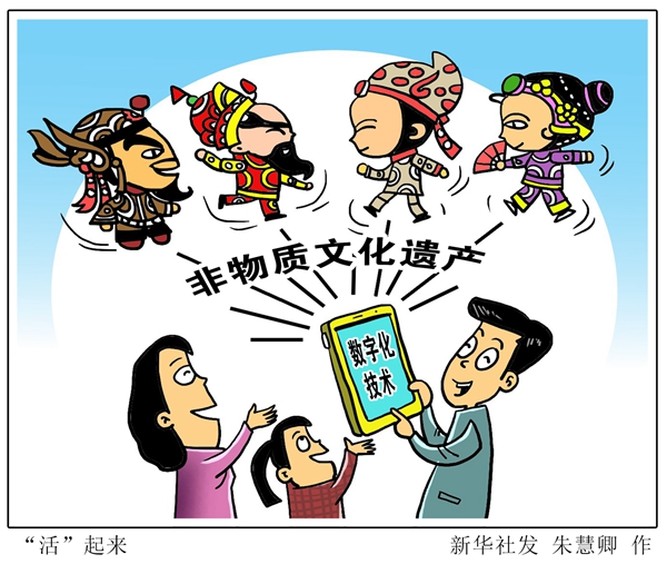 漫畫:“活”起來 新華社發(fā) 朱慧卿 作