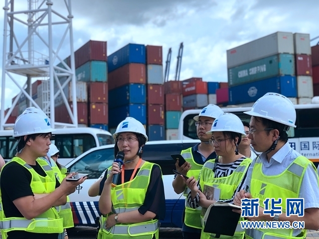 記者在港口碼頭看到,一艘艘貨輪緩緩駛?cè)?,大大小小集裝箱堆滿港口,龍門吊車轟轟聲響,各種貨車、叉車繁忙往來(lái)。