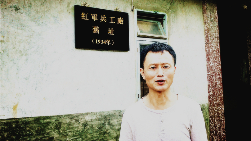 6月17日,長汀縣樓子壩村主任劉聲紅介紹村內(nèi)紅軍兵工廠舊址的歷史情況。