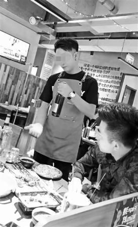 北青報記者在其中一則視頻中看到,一名餐廳服務人員當著一桌食客掏出一根準備好的筷子,左手持酒瓶,右手將筷子的一端頂住啤酒瓶蓋并換至左手扶穩(wěn),然后右手手掌一推,瓶蓋隨即崩開,整個過程僅幾秒鐘。