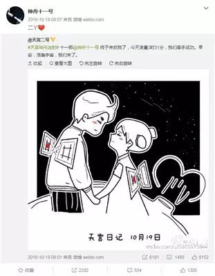 神舟十一號(hào)與天宮二號(hào)微博賬號(hào)互動(dòng)(來源:神舟十一號(hào)微博)
