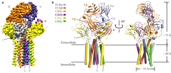 對(duì)此,文章審稿人的評(píng)價(jià)是:“該研究工作代表了細(xì)胞適應(yīng)性免疫的分子機(jī)理研究的一個(gè)重要里程碑。通過闡明第一個(gè)在膜上組裝的T細(xì)胞受體和其CD3共受體的結(jié)構(gòu),極大地增加了我們對(duì)T細(xì)胞識(shí)別抗原反應(yīng)的激活機(jī)制的理解?!?/p>