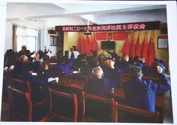 ▲湖南岳陽平江縣梅仙鎮(zhèn)石嶺村家風(fēng)評(píng)比現(xiàn)場(chǎng)(翻拍)。