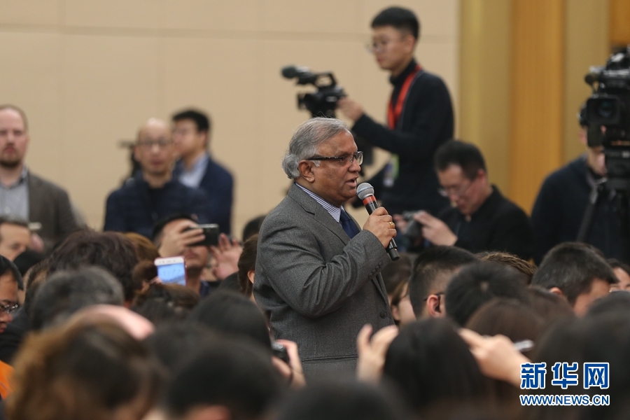 十三屆全國人大二次會(huì)議新聞中心3月8日10時(shí)在梅地亞中心新聞發(fā)布廳舉行記者會(huì),邀請國務(wù)委員兼外交部長王毅就“中國外交政策和對外關(guān)系”相關(guān)問題回答中外記者提問。圖為印度報(bào)業(yè)托拉斯記者提問。新華網(wǎng)/中國政府網(wǎng) 劉廈 攝
