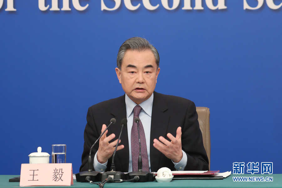 十三屆全國(guó)人大二次會(huì)議新聞中心3月8日10時(shí)在梅地亞中心新聞發(fā)布廳舉行記者會(huì),邀請(qǐng)國(guó)務(wù)委員兼外交部長(zhǎng)王毅就“中國(guó)外交政策和對(duì)外關(guān)系”相關(guān)問(wèn)題回答中外記者提問(wèn)。圖為王毅回答記者提問(wèn)。新華網(wǎng)/中國(guó)政府網(wǎng) 陳杰 攝