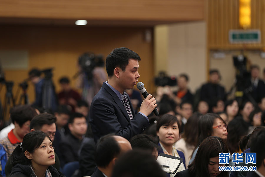全國(guó)政協(xié)十三屆二次會(huì)議3月10日(星期日)上午8:45在梅地亞兩會(huì)新聞中心舉行記者會(huì),邀請(qǐng)5位政協(xié)委員就“新時(shí)代政協(xié)履職”回答記者提問。新華網(wǎng)、中國(guó)政府網(wǎng)進(jìn)行現(xiàn)場(chǎng)直播。圖為中央廣播電視總臺(tái)央視記者提問。新華網(wǎng)/中國(guó)政府網(wǎng) 劉廈攝