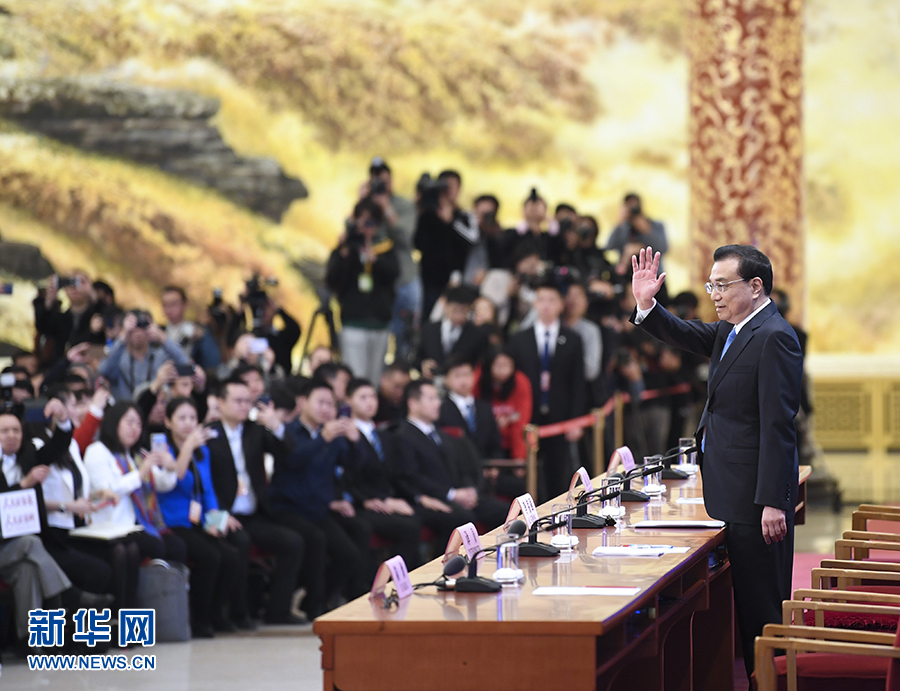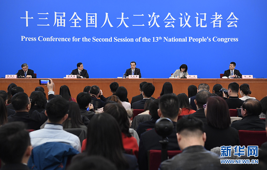 3月15日,十三屆全國(guó)人大二次會(huì)議在北京人民大會(huì)堂舉行記者會(huì),國(guó)務(wù)院總理李克強(qiáng)應(yīng)大會(huì)發(fā)言人張業(yè)遂的邀請(qǐng)會(huì)見(jiàn)中外記者,并回答記者提問(wèn)。 新華社記者 申宏 攝