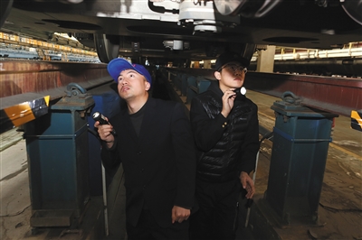 “這樣的油泥是正常,但如果它旁邊的傳感器也滲出了油泥,我們就得注意了?!睓z查到牽引電機的齒輪箱時,皮春成指著它旁邊的一個乒乓球大小的圓形突起物跟徒弟說,“這個齒輪箱溫度傳感器探針,功能是檢測有齒輪箱的溫度有無異常,一些隱蔽的傷損,通過技術(shù)手段看不出來,只能通過外觀上的蛛絲馬跡去判斷,得不斷積累經(jīng)驗?!逼ご撼筛嬖V記者,今年春運自己的徒弟楊雪松就將要獨自完成一些列車的日常檢修任務(wù),趁著白天不算特別忙,自己還是想多帶他走上幾趟。