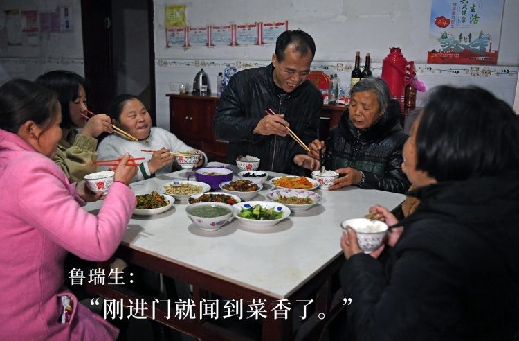 女兒和親戚們把老魯夫妻扶進(jìn)了家門(mén),80歲的老母親把飯菜又熱了一遍,一家人終于坐到了飯桌前……