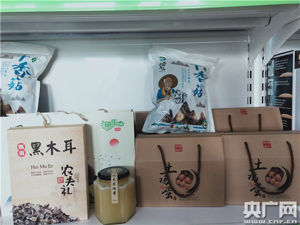 于衍來將村民的農(nóng)副產(chǎn)品進(jìn)行包裝售賣(記者 王啟慧 攝)